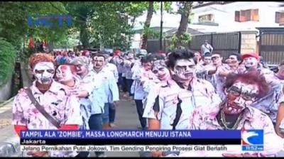 Tampil Ala Zombie, Sopir Truk Unjuk Rasa ke Istana