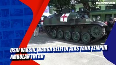 Usai Vaksin, Warga Selfi di Atas Tank Tempur Ambulan TNI AD
