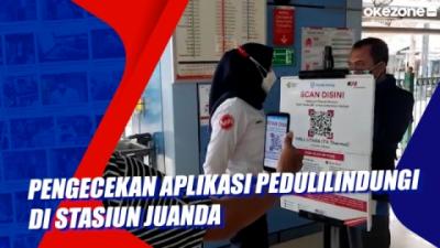 Pengecekan Aplikasi PeduliLindungi di Stasiun Juanda, Banyak Calon Penumpang Mengunduh di Lokasi