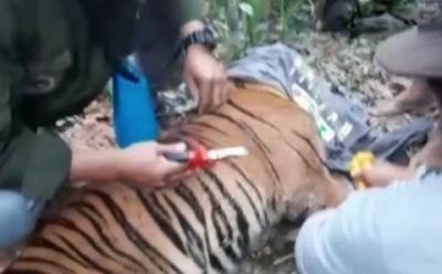 Seekor Harimau Sumatera Terjerat Perangkap Babi di Aceh