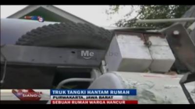 Truk Tangki hantam Rumah