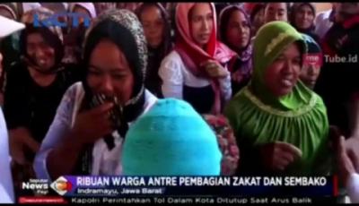 Ribuan Warga Antre Pembagian Zakat dan Sembako di Indramayu