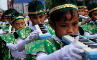 Para siswa siswi Taruna Akademi Kepolisian melakukan atraksi marching band dalam acara serah terima jabatan (sertijab) Kapolri dari Jenderal Polisi Bambang Hendarso Danuri kepada Komjen Pol Timur Pradopo di Mako Brimob, Kelapa Dua, Jawa Barat, Rabu (27/10/2010).