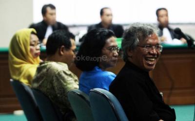 Terdakwa perkara suap pemilihan Deputi Gubernur Senior Bank Indonesia Miranda s Goeltom, Panda Nababan, membacakan nota pembelaan dalam persidangan di Pengadilan Tindak Pidana Korupsi, Jakarta, Rabu (15/6/2011). Sebelumnya, Panda dituntut tiga tahun penjara dan denda Rp150 juta subsidair enam bulan kurungan. Pada sidang ini, Panda menolak menerima suap Rp1,9 miliar.