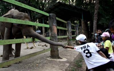 Sejumlah pengunjung melihat beberapa hewan yang ada di dalam Taman Marga Satwa Ragunan, Jakarta Selatan, Jumat (6/4/2012). Memasuki libur panjang minggu ini, kebun binatang milik Pemerintah DKI Jakarta yang berdiri di atas tanah seluas 140 hektare ini menjadi salah satu tempat alternatif bagi para keluarga untuk berlibur. Kebun Binatang Ragunan adalah kebun binatang pertama di Indonesia. Di dalamnya, terdapat berbagai koleksi, yang terdiri dari 295 spesies dan 4040 spesimen.