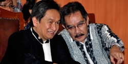 Pimpinan Rapat Tim Pengawas Century Pramono Anung bersama Mantan Ketua KPK Antasari Azhar saat hadir memenuhi undangan Tim Pengawas (Timwas) Century DPR, di Gedung DPR/MPR, Jakarta, Rabu (12/9/2012). Di hadapan Timwas Century, Antasari akan mengklarifikasi pernyataannya mengenai rapat pembahasan bail out Century di Istana Negara tanggal 9 Oktober 2009 lalu.
