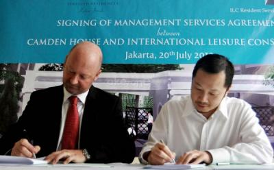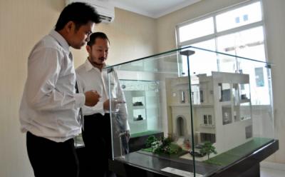 Direktur Utama PT Akasia Prima Sejahtera Ridwan Yuwono (kanan) berbincang dengan Branch Manager PT Bank Tabungan Negara (Persero) Tbk Heveanto Bekti usai penandatanganan perjanjian kerjasama Kredit Kepemilikan Rumah (KPR) sebagai salah satu fasilitas pembayaran kepemilikan rumah kepada para pembeli Camden House Serviced Residences yang berlokasi di Kebon Jeruk, Jakarta Barat, Rabu (27/3/2013). BTN Tbk menyediakan KPR dengan bunga 7,49% fixed untuk dua tahun.