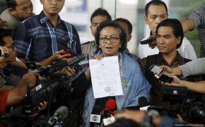 Ketua KPK Abraham Samad (kedua kanan), Ketua BPK Hadi Purnomo (kedua kiri), Wakil Ketua BPK Ali Masykur Musa (kiri), dan Wakil Ketua KPK Zulkarnaen, memberikan keterangan pers usai memberikan berkas audit investigasi tahap II di Gedung KPK, Jalan HR Rasuna Said, Jakarta Selatan, Jumat (23/8/2013). Dalam audit investigasi tahap II, BPK belum menyerahkan hasil tentang kerugian negara dalam kasus proyek pusat olahraga Hambalang.