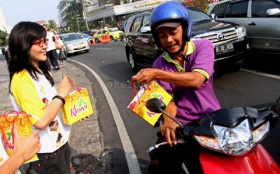 Pramudi taksi Blue Bird memberikan bunga kepada penumpang yang akan naik taksi Blue Bird di Mall Lotte Shopping Avenue, Jakarta, Rabu (4/9/2013). Kegiatan ini dilaksanakan untuk memperingati Hari Pelanggan Nasional yang jatuh pada Rabu 4 September 2013.