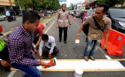 Sejumlah Polisi Lalu Lintas (Polantas) secara serempak melakukan tarian Saman, saat Hari Bebas Kendaraan Bermotor di kawasan Bundaran Hotel Indonesia, Minggu (22/9/2013). Tari Saman merupakan sebuah tarian Suku Gayo, Aceh Tenggara, yang biasa ditampilkan untuk merayakan peristiwa-peristiwa penting dalam adat. Kegiatan ini digelar dalam rangka memeriahkan hari jadi ke-58 Korps Lalu Lintas Polri.