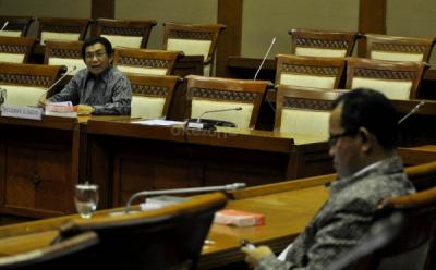 Ketua Dewan Komisioner Otoritas Jasa Keuangan (OJK) Muliaman D Hadad tiba di Gedung Komisi Pemberantasan Korupsi (KPK), Jalan HR Rasuna Said, Jakarta Selatan, Selasa (1/10/2013). Muliaman Hadad hari ini diperiksa KPK sebagai saksi dalam kasus bailout Bank Century.