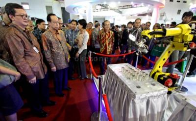 President Director Manufacturing Indonesia Ichiro Suganuma dan President Director PT Panasonic Gobel Indonesia Hiroyoshi Suga menerangkan kepada media mengenai Advanced Plant Factory System yang merupakan salah satu inovasi dari Panasonic untuk tanaman hidroponik saat acara Indonesia-Japan Expo 2013 di JIExpo, Kemayoran, Jakarta, Kamis (19/12/2013). Panasonic menampilkan solusi B2B sebagai bagian dari komitmen perusahaan untuk mendorong terbentuknya sebuah komunitas masyarakat ramah lingkungan dan berkelanjutan di Indonesia.