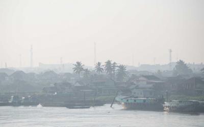 Petugas Bapedalda Padang melakukan pengukuran kualitas udara di Pantai Purus, Padang, Sumatera Barat, Senin (17/3/2014). Sejak kabut asap menyelimuti Sumbar, Bapedalda Padang setiap hari mengukur kualitas udara di 16 titik kota itu dengan kondisi terparah mencapai 250 mikrogram/Nmeter3 atau tidak sehat dari baku mutu standar 150 mikrogram/Nmeter3.