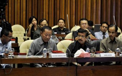 Massa dari Gerakan Ganyang Mafia Hukum Indonesia berunjukrasa saat Wakil Presiden Boediono bersaksi untuk terdakwa mantan Deputi Gubernur Bank Indonesia Budi Mulya, di Pengadilan Tindak Pidana Korupsi (Tipikor), Jalan HR Rasuna Said, Jakarta Selatan, Jumat (9/5/2014). Massa yang kontra Boediono tersebut meminta agar pelaku korupsi dihukum mati karena telah menyengsarakan rakyat.