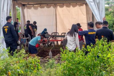 Sebuah alat berat mengangkat lumpur yang masih menutupi sebagian area Taman Pemakaman Umum (TPU) Kapuk Teko, Kampung Apung, Jakarta Barat, Jumat (16/5/2014). Sebanyak 3.810 makam yang terendam selama 24 tahun itu sudah mulai menyusut dan pihak Pemkot Jakarta Barat akan segera melakukan relokasi ke TPU Tegal Alur.