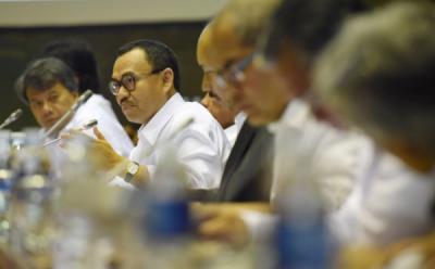 Suasana salah satu anjungan minyak milik PT Pertamina Hulu Energi Offshore North West Java (PHE ONWJ) di Blok ONJW yang terletak di lepas pantai utara Jawa, Minggu (22/6/2014). Anjungan tersebut memproduksi sekitar 46.000 barel minyak mentah per hari dan menyumbang APBN sekitar Rp20 triliun per tahun.