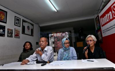 Kepala Divisi Pembelaan Hak Sipil Politik Putri Kanesia (kiri) dan Staf Divisi Pembelaan Hak Sipil Politik Arif Nurfikri memberikan keterangan pers soal pemenuhan hak-hak sipil politik di Papua, di Kantor Kontras, Jakarta, Sabtu (16/8/2014). Komisi untuk Orang Hilang dan Korban Tindak Kekerasan (Kontras) mendesak kepada negara untuk secara sungguh-sungguh memastikan dan menjamin perlindungan dan pemenuhan hak-hak sipil politik masyarakat Papua. Desakan tersebut disebabkan karena dalam hitungan waktu dua minggu terakhir (28 Juli hingga 15 Agustus 2014), banyak kejadian-kejadian terjadi di Papua, seperti penembakan, pembakaran, dan penangkapan.