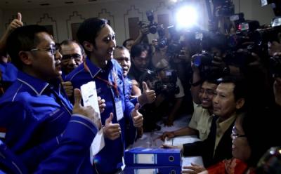 Kuasa Hukum Prabowo-Hatta Maqdir Ismail (kedua kiri), Kuasa Hukum Jokowi-JK Achmad Rifai (kiri), Pakar Hukum Margarito Kamis (kedua kanan), dan Kriminolog UI Priyono B Sumbogo, hadir dalam diskusi di kawasan Cikini, Jakarta Pusat, Minggu (24/8/2014). Diskusi ini mengangkat tema "Paska Putusan MK dan Komitmen Membangun Pemerintahan yang Bersih di Jakarta".