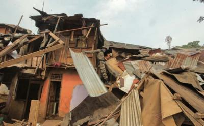 Alat berat seperti eskavator dan crane melakukan proses normalisasi Kali Ciliwung di Jalan Jatinegara Barat, Jakarta, Jumat (5/9/2014). Setelah beberapa bangunan ruko digusur, kini proses pemasangan turap di Kali Ciliwung mulai dilakukan.