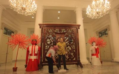 Gubernur DKI Jakarta Basuki Tjahaja Purnama (kiri) didampingi isteri Ny. Veronica Tan Basuki (kanan) bersiap mengikuti acara pelantikan di Istana Negara, Jakarta, Rabu (19/11/2014). Basuki Tjahaja Purnama menjadi gubernur pertama yang dilantik langsung oleh Presiden Joko Widodo sesuai Pasal 163 ayat 1 Peraturan Pemerintah Pengganti Undang-Undang (Perpu) tentang pemilihan kepala daerah.