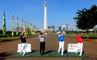 Pegolf profesional Mardan Mamat memukul bola golf pada turnamen BRI Indonesia Open 2014 di Damai Indah Golf, Pantai Indah Kapuk, Jakarta Utara, Kamis (4/12/2014). Kejuaraan yang menyediakan total hadiah USD 750.000 (Rp915 juta) itu diikuti oleh pemain golf profensional, seperti Padraig Harrington (Irlandia), Gaganjeet Bhullar (India) dan Mardan Mamat (Singapura). Turnamen ini berlangsung hingga Minggu 7 Desember 2014 mendatang.