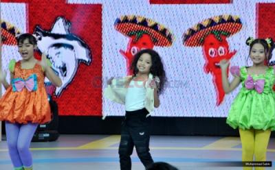 Penyanyi cilik Romaria Simbolon saat berkunjung ke Kantor Redaksi Okezone, Jalan Kebon Sirih Raya, Jakarta Pusat, Kamis (29/1/2015). Sepupu dari Bastian Steel ini dikenal lewat single yang berjudul Malu-Malu Sama Kucing.