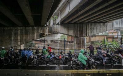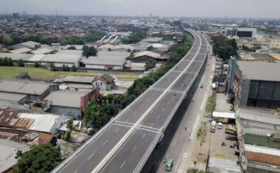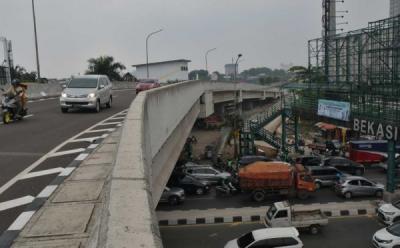 Sejumlah pekerja menyelesaikan proyek pembangunan Jalan Layang Tendean-Ciledug di Kawasan Kebayoran Baru, Jakarta Selatan, Rabu (11/3/2015).