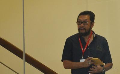 Wakil Ketua Umum Partai Golkar versi Munas Ancol Yorrys Raweyai (tengah) berbicara didampingi Pengamat Politik Hendri Satrio (kiri) dan Moderator Pangeran Ahmad Nurdin (kanan) saat diskusi polemik Sindo Trijaya Radio, di Jakarta, Sabtu (14/3/2015). Diskusi tersebut membahas tentang 'Negara & Pertaruhan Demokrasi'.