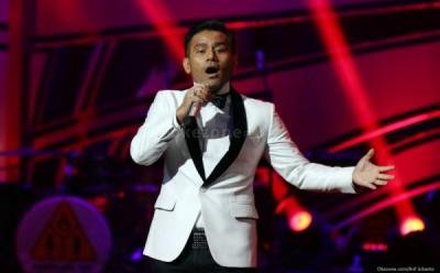 Penyanyi Zaskia Gotik meramaikan acara Global Seru Awards di Studio 19 Global TV, Jakarta, Rabu (15/4/2015).