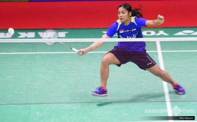 Pebulutangkis tunggal putri Thailand Ratchanok Intanon dibantu tim medis keluar lapangan saat bertanding melawan tunggal putri Indonesia Lindawen Fanetri.