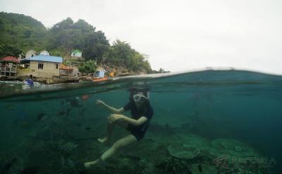 Berbagai jenis ikan karang berenang di terumbu karang Taman Laut Olele, Kabupaten Bonebolango, Gorontalo, Selasa (1/9/2015).