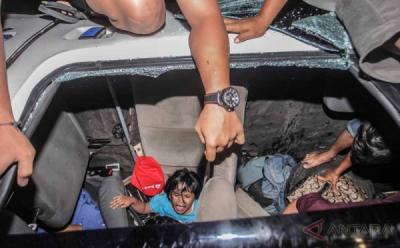 Sebuah mobil Toyota Avanza menabrak tiang jalan layang non tol (JLNT) di Jalan Iskandarsyah, Jakarta Selatan, Kamis (8/10/2015).