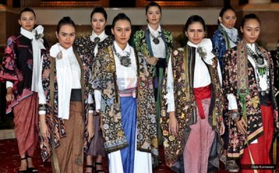 Deden Siswanto menampilkan karya yang cantik di ajang Indonesian Weekend di Potters Field Park, London. Koleksinya mengusung konsep padu padan layering dengan mengandalkan olahan tenun. Tema koleksinya Borneo Series.