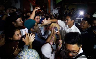 Anak muda yang tergabung dalam Jacklovers melakukan aksi simpatik di kawasan Patung Kuda, Jakarta, Minggu (31/7/2016). Aksi tersebut merupakan bentuk dukungan kepada Tri Rismaharini maju sebagai calon gubernur (cagub) di Pilkada DKI 2017. Alasan mereka mendukung Wali Kota Surabaya untuk bisa maju di Pilkada DKI lantaran dianggap sebagai pemimpin yang bisa merangkul anak muda di Jakarta dan juga dianggap sebagai sosok yang santun dalam berpolitik.