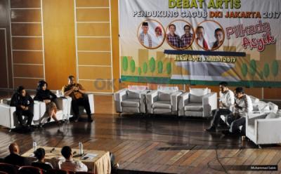 Ketua Umum Partai Bulan Bintang Yusril Ihza Mahendra (kelima kanan) menyaksikan pencak silat Betawi dengan pendukungnya sebelum deklarasi calon gubernur DKI Jakarta di Jakarta, Minggu (28/8/2016). Sejumlah ormas yang tergabung dalam Duta Yusril mendeklarasikan Yusril sebagai bakal calon Gubernur DKI Jakarta dalam Pilkada 2017.
