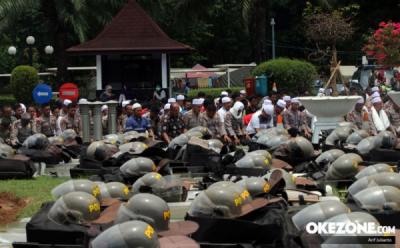 Ratusan pasukan Asmaul Husna Polri usai mengikuti "Apel Pengamanan Aksi 212" di Silang Monas, Jakarta Pusat, Kamis (1/12/2016). Polri kembali menurunkan pasukan Asmaul Husna pada demo 2 Desember nanti.