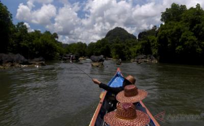 Warga menyandarkan kapalnya di dermaga dua pusat wisata Rammang-Rammang Maros, Sulawesi Selatan, Senin (12/12/2016).
