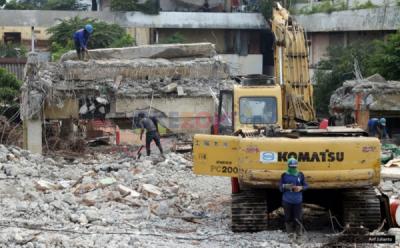 Pembongkaran Bangunan Jalur Kereta Bandara di Medan