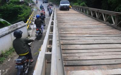 Jembatan Cepogo ambruk sebagian akibat tergerus aliran sungai lereng Merapi karena intensitas curah hujan yang tinggi.