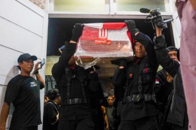 Sejumlah polisi berjaga di depan rumah duka HBT, di Jalan Klenteng, Padang, Sumatra Barat, Senin (20/3/2017).