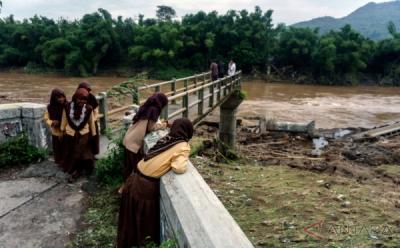 Jembatan Rusak, Siswa Terjang Sungai untuk Sekolah