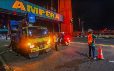 Diduga Kelebihan Muatan, Tongkang Batu Bara Tabrak Jembatan Ampera Palembang