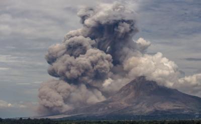 Material Vulkanik Sinabung Saat Membumbung Tinggi ke Angkasa