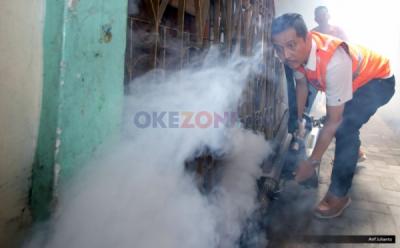 Kader Partai perindo melakukan fogging di Jalan Kemuning, Pamulang Barat, Tangerang Selatan, Minggu (20/8/2017).