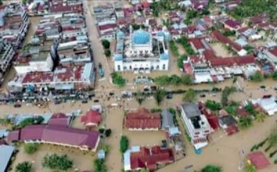 Petani setempat mengalami kerugian akibat tanaman padi mereka terendam banjir.
