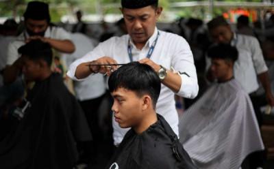 Komunitas Ngaji Salon di Masjid Cheng Ho Adakan Potong Rambut Gratis