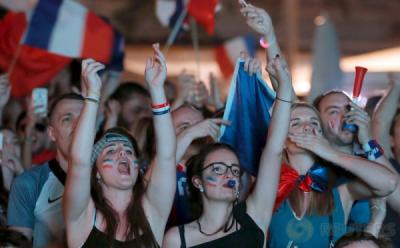 Pemain timnas Prancis melakukan parade trofi Piala Dunia 2018 di Paris, Prancis, Senin 16 Juli 2018 waktu setempat. (Eric Feferberg/Pool via Reuters)