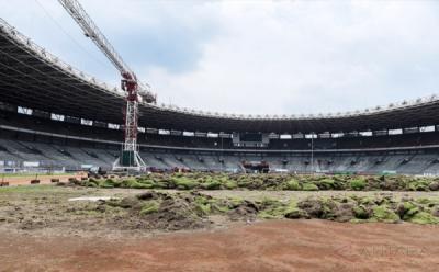 Artis Indra Bekti membawa obor Asian Games 2018 melintasi Masjid Raya Baiturrahman, Banda Aceh. Kirab obor mengelilingi kota Banda Aceh sejauh 10 kilometer melintasi Museum Tsunami, Masjid Raya Baiturrahman dan berakhir di Kantor Gubernur Aceh.