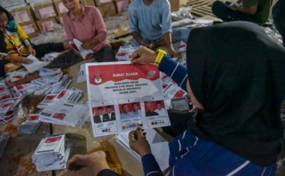 Perwakilan partai memeriksa contoh surat suara Pemilu 2019 di Kantor KPU, Jakarta, Jumat 14 Desember 2018. Proses validasi ini berlangsung hingga Senin 17 Desember 2018.