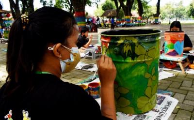 Peserta mewarnai gambar pada acara XPANDER Tons of Real Happiness (ToRH) di Summarecon Mal Serpong, Tangerang.